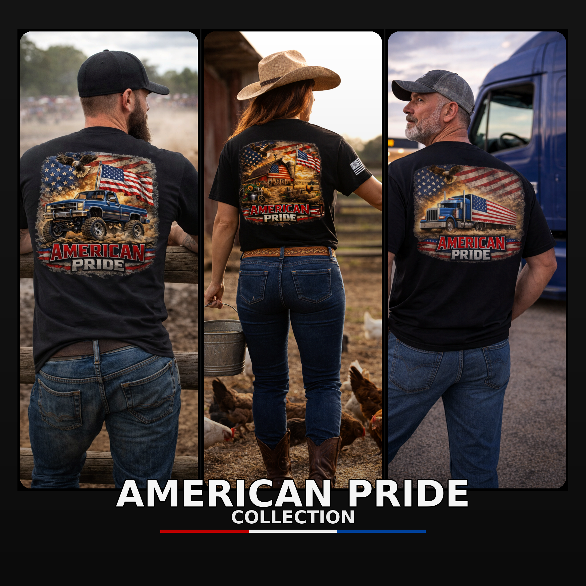 This collection is dedicated to the workers who keep America alive—truckers, farmers, tradesmen, first responders, and everyone who puts in real work to keep our communities moving. The American Pride Collection pairs that same grit with the pastimes we live for: the outdoors, backroads, and weekends that remind us why we do it.